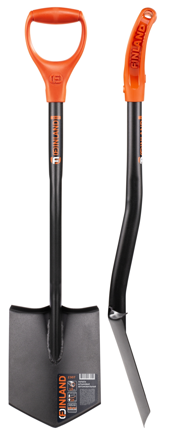 Лопата штыковая с черенком мини Finland 2307 из закалённой стали с защитным покрытием Универсальная форма с изгибом тулейки: для срезания и перекопки грунта Удлинённая тулейка с двойным креплением обжимным кольцом и сквозной клёпкой увеличивает прочность конструкции Прочный гладкий черенок. Комфортная пластиковая рукоятка с противоскользящей поверхностью Удобный наступ с передним отворотом