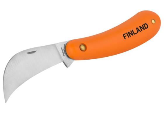 Садовый нож с изогнутым лезвием Центроинструмент Finland 1452 применяется для обрезания небольших веток с деревьев и кустарников. Наличие изгиба у лезвия обеспечивает прямой рез без повреждения коры. Складной инструмент легко переносить с собой.