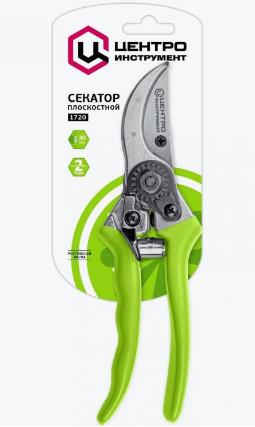Секатор плоскостной 1720. Верхнее лезвие из высокоуглеродистой стали SK5. Нижнее лезвие из углеродистой стали 50С. Алюминиевые ручки покрытые винилом (PVC).