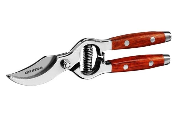 Плоскостной секатор Grinda PRO Line 423415 используется для обрезки веток и стеблей растений. Двухгранная заточка лезвий обеспечивает качество реза. Полированные рукоятки из древесины гарантируют надёжный хват даже влажной рукой.