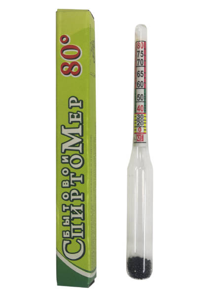 Спиртометр — это ареометр, предназначенный для определения процентого содержания спирта. С помощью этого небольшого и удобного прибора вы сможете измерить крепость практически любой жидкости, содержащей спирт. Прибор изготовлен из стекла в форме поплавка. Внутри верхней части спиртометра размещена цветная шкала проградуированная в процентах спирта по объему. В нижней части спиртометра размещен противовес из мелкой дроби. Спиртомер должен свободно плавать, не касаясь стенок сосуда. Снятие показаний производить по нижней границе мениска при температуре 20°С (+/- 2°С). Спиртомер бытовой, рюмочный предназначен для определения объемной концентрации этилового спирта в водных растворах в % объема (градусах).