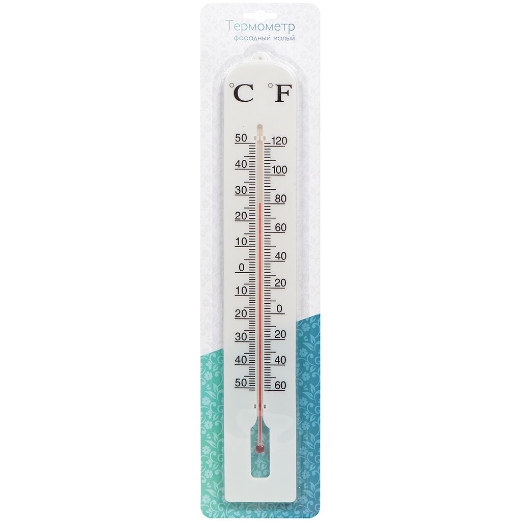 Уличный фасадный термометр, устанавливается на фасад здания. Отображает температуру воздуха на улице. Выполнен из белого пластика. Крупные цифры шкалы видны с большого расстояния.