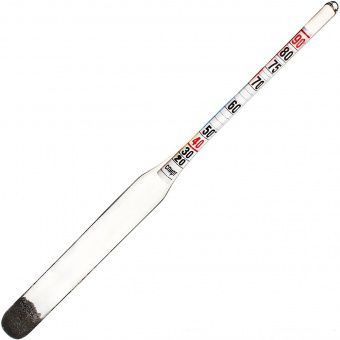 Ареометр для спирта (спиртомер). Материал основы - стекло. Предназначен для измерения концентрации этилового спирта в водно-спиртовых растворах в объемных процентах (градусах крепости) в диапазоне измерений от 0 до 90 градусов. Представляет собой стеклянную трубку, диаметры нижней и верхней части которой различны. В более узкой (верхней части) прибора находится градуированная шкала, отображающая значения объёмных процентах концентрации этилового спирта в измеряемом растворе.