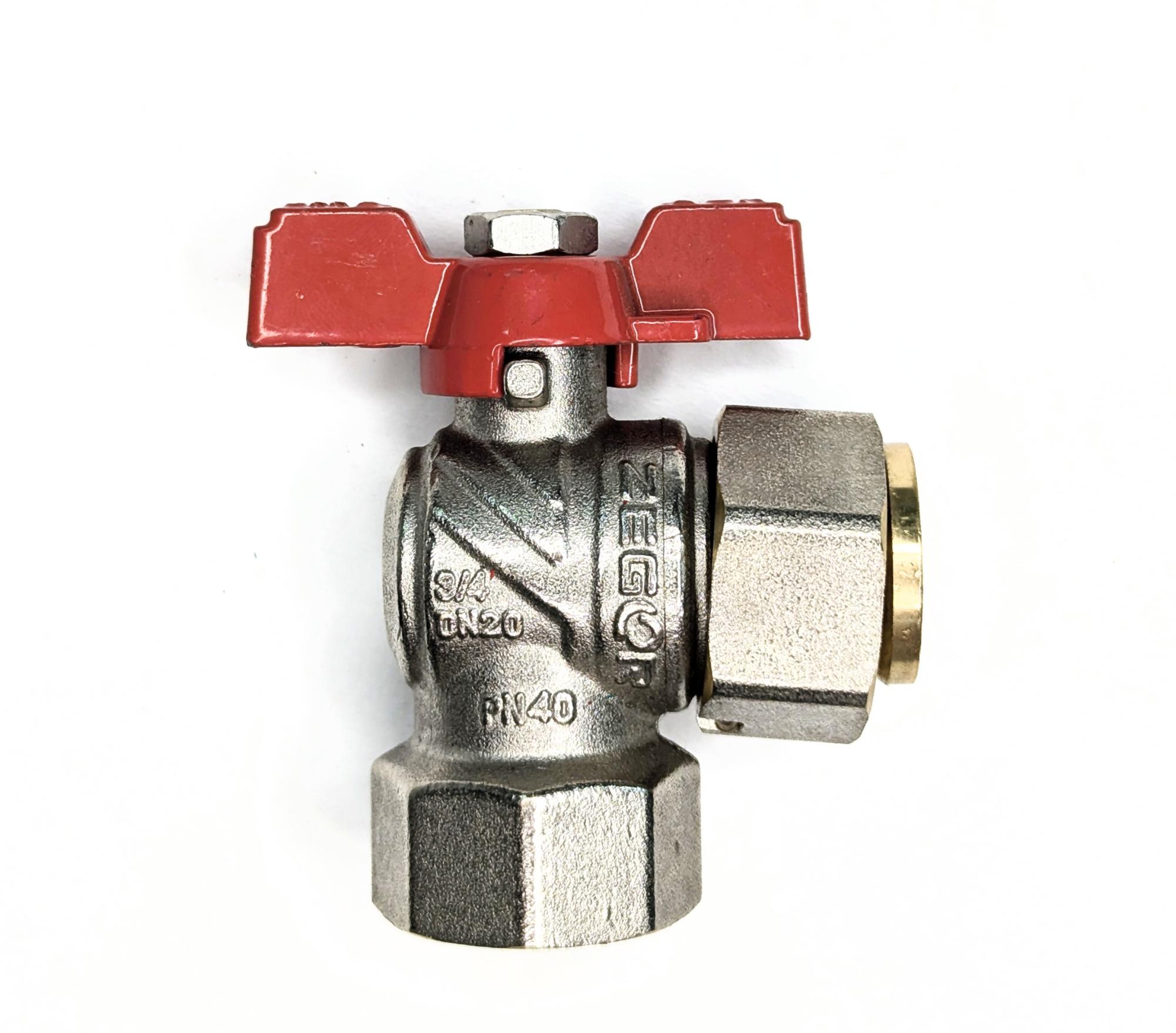 Кран шаровый 20 угловой с накидной гайкой бабочка ассортимент