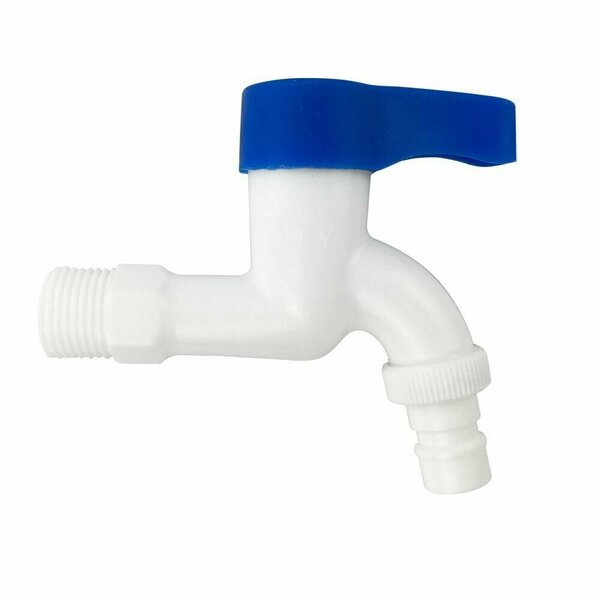 Кран водоразборный 1/2н, из высокопрочного пластика АБС белый со штуцером, с возможностью подсоединения поливочного шланга.