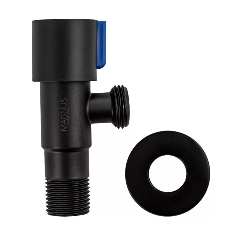 9281 MAGNUS - Кран металлокерамика угловой 1/2"х1/2", синяя ручка, с отражателем, из нержавеющей стали марки 304, цвет черный.