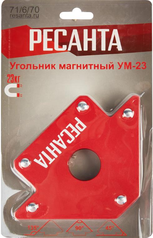 Уголок магнитный Ресанта используется для фиксации деталей во время сварочных работ под углами в 45, 90 и 135 градусов. Подходит для работы с любыми металлическими изделиями. Максимальная сила сцепления на отрыв до 23кг. Магнитный фиксатор сделан из стали и ферритового магнита. Ферритовый магнит сохраняет свойства при высоких температурах. Магнитный угол быстро и надёжно соединяет и фиксирует детали, освобождает руки и облегчает монтаж конструкций. Магнитные инструменты облегчают работу и помогают поддерживать порядок.