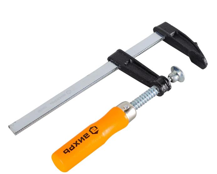 Струбцина Вихрь F-образная 150х50 мм – один из видов вспомогательных инструментов, используемый для фиксации каких-либо деталей в момент обработки или для плотного прижатия их друг к другу при сверлении, склеивании и т.п. Оцинкованный винт устойчив к коррозии, деревянный рукоятка удобно лежит в руке, высокопрочная стальная штанга устойчива к деформации при больших нагрузках, рабочие поверхности захвата оборудованы съёмными пластиковыми накладками, которые предотвращают появление вмятин на скрепляемых деталях.