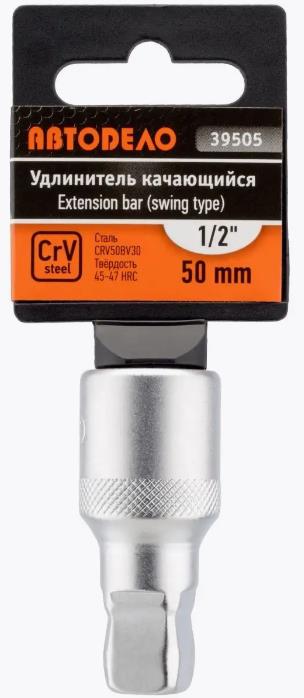 Удлинитель изготовлен из инструментальной стали CRV50BV30 методом холодной штамповки. Закалён до твёрдости 45-47 HRC. Имеет стандартный наружный и внутренний присоединительный квадрат 1/2 . Наружный присоединительный квадрат снабжён подпружиненным удерживающим шариком. Шаровая конструкция наружного присоединительного квадрата, позволяет применять инструмент под углом к основной оси крепежа, что удобно при работе с крепежными элементами, расположенными в труднодоступных местах.