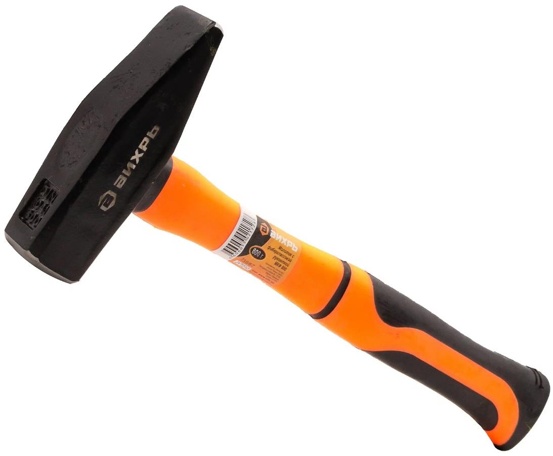 Молоток ВИХРЬ 800гр, с фибергласовой рукояткой, боек покрыт черным лаком и надежно зафиксирован на рукоятке при помощи эпоксидного клея. Боёк кованый и отфрезерованный, изготовлен из стали марки 50. Рабочие части бойка закалены, соответствуют требованиям ГОСТ 2310-77. Рукоятка изготовлена из фибергласса (стеклопластика), обладающего высокой механической прочностью, и устойчива к воздействию масел, бензина и растворителей. Стальной боёк квадратной формы, весит 0,8 кг.