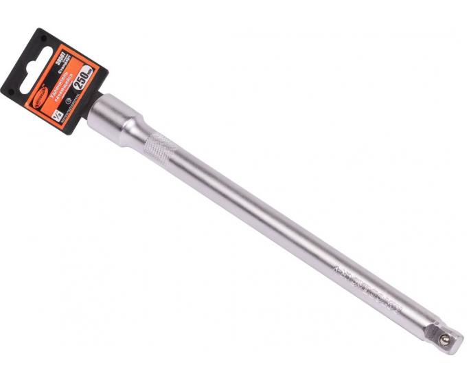 Удлинитель изготовлен из инструментальной стали CRV50BV30 методом холодной штамповки. Закалён до твёрдости 45-47 HRC. Имеет стандартный наружный и внутренний присоединительный квадрат 1/2 . Наружный присоединительный квадрат снабжён подпружиненным удерживающим шариком. Шаровая конструкция наружного присоединительного квадрата, позволяет применять инструмент под углом к основной оси крепежа, что удобно при работе с крепежными элементами, расположенными в труднодоступных местах